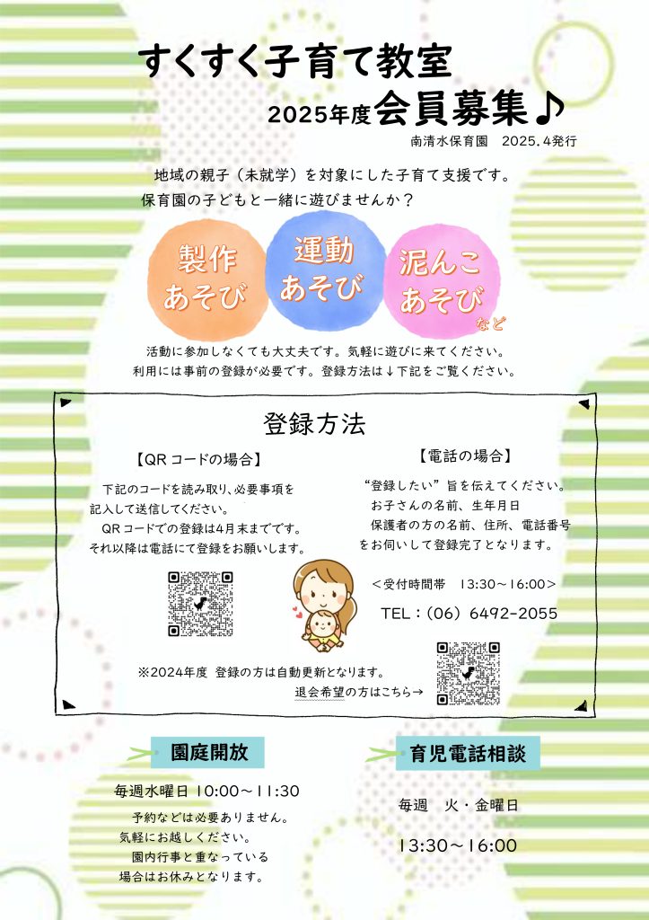 2025年度すくすく子育て教室会員・一時保育、募集しています。